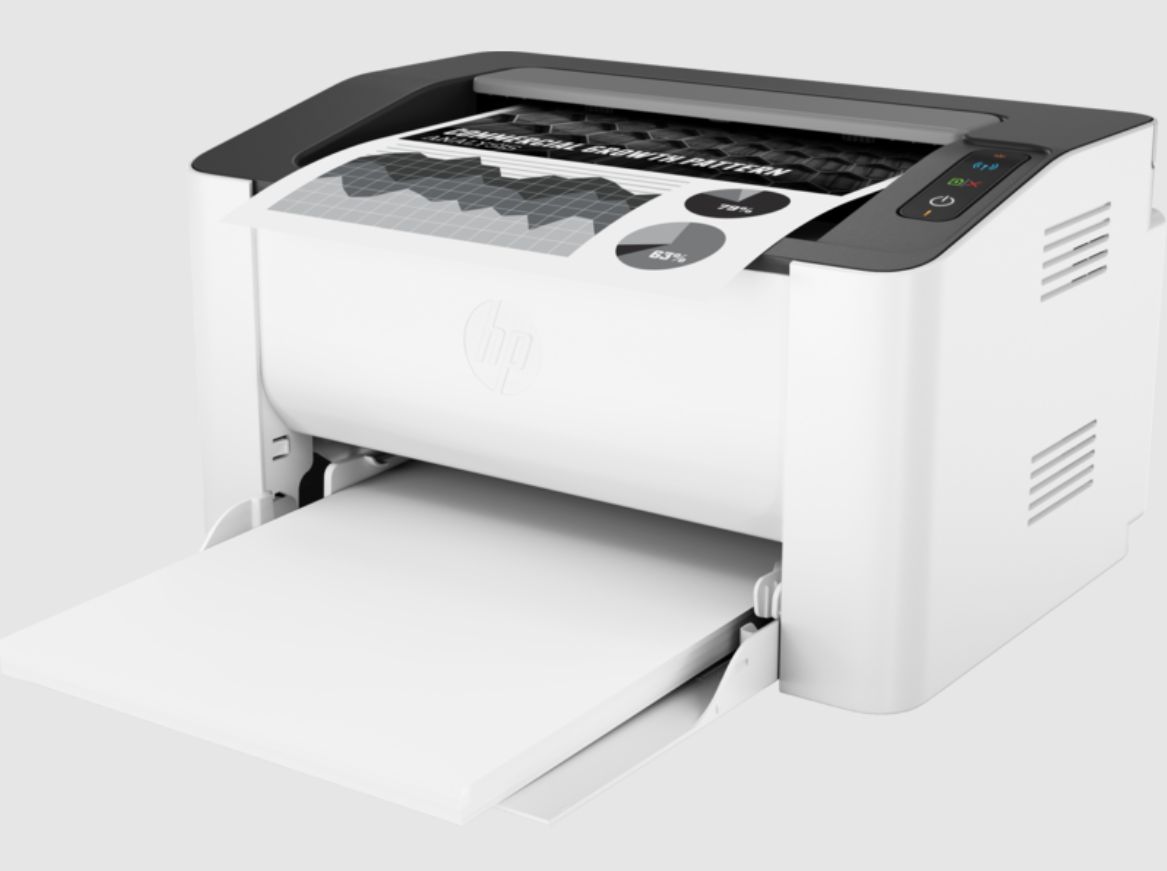 HP Laser 107w Printer; Preinstalled introductory HP Laser Black print cartridges (500 pages); Setup guide; Reference guide; Regulatory statements flyer; Power cord; USB cable |