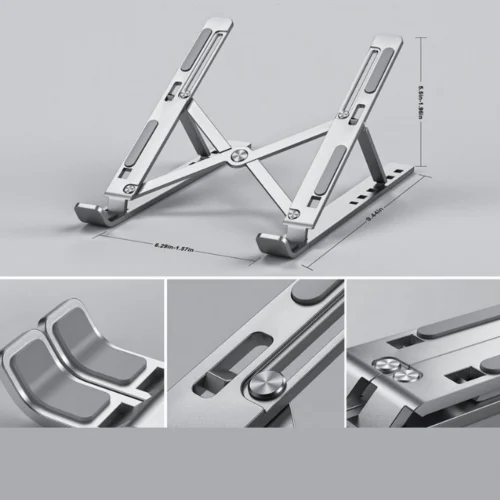 Aluminum Alloy Foldable Laptop Stand With carrier bag Suitable for 10″-14″ inches Laptops Adjustable Design Steel Construction Portable and Foldable Hollow bottom for heat dissipation