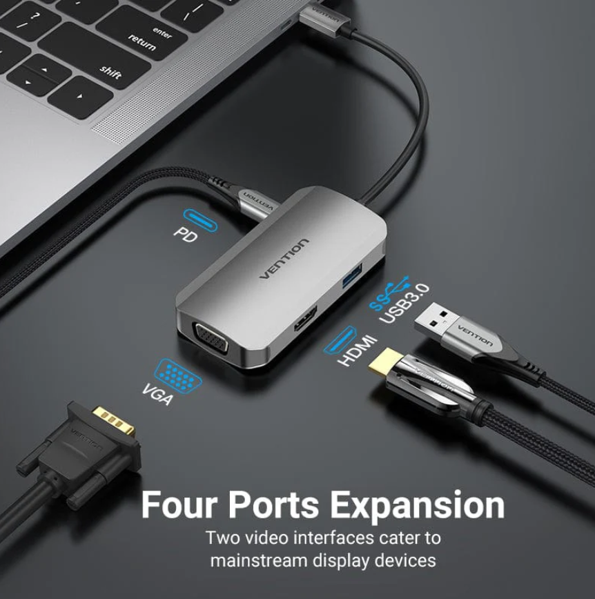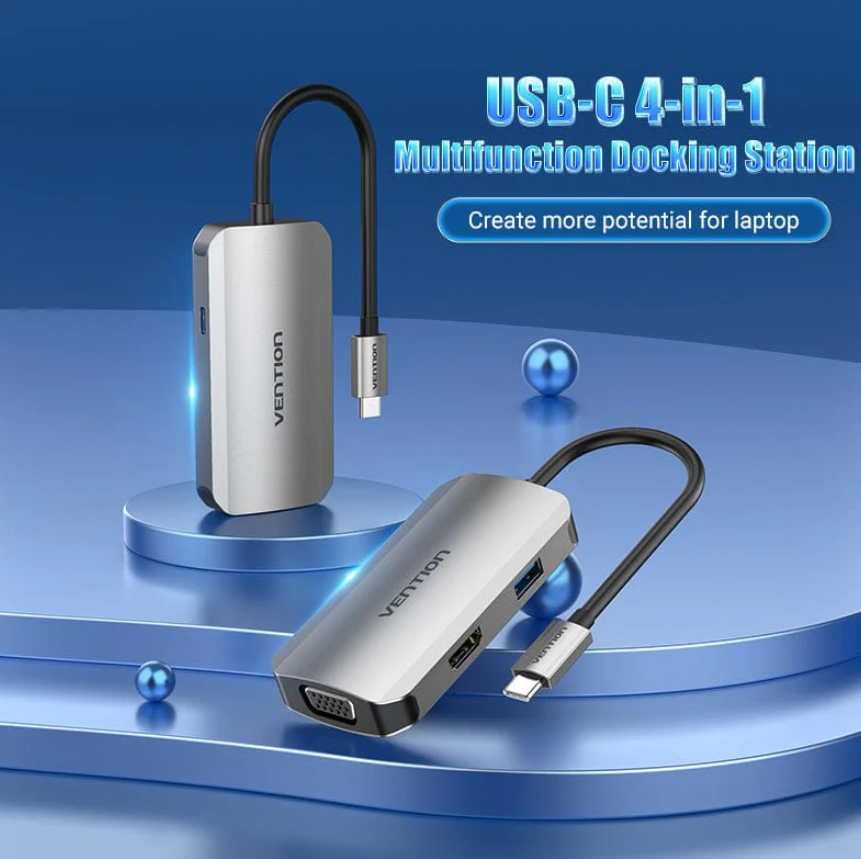 The Vention Type C to Multi-Function 4 IN 1 Docking Station is a versatile accessory that allows you to expand the connectivity options of your laptop or desktop through a single Type C port. It offers four different ports in one compact and convenient hub, making it a valuable tool for users who require various connections on the go or at their workstation.
