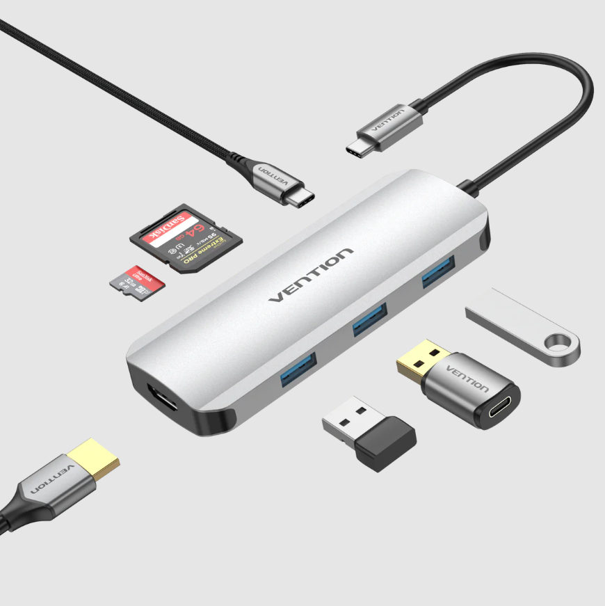 The Vention USB-C Multi-Functional 7 in 1 Docking Station (VEN TOJHB) is a device that allows you to expand the capabilities of your laptop or desktop computer. It connects to your computer via a USB-C port and provides multiple ports for various peripherals.