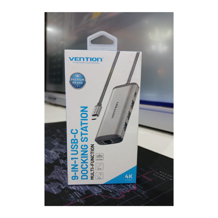 The Vention USB-C Multi-Functional 9 in 1 Docking Station (VEN THAHB) is a device that expands the capabilities of your laptop or computer by providing additional ports and features. It connects to your computer via a USB-C port and provides nine additional ports for various peripherals and devices.