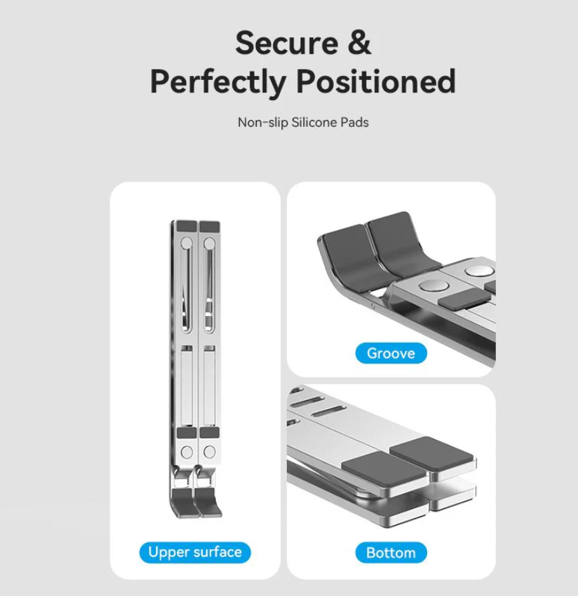 - Silicone anti-slip pads to protect the computer